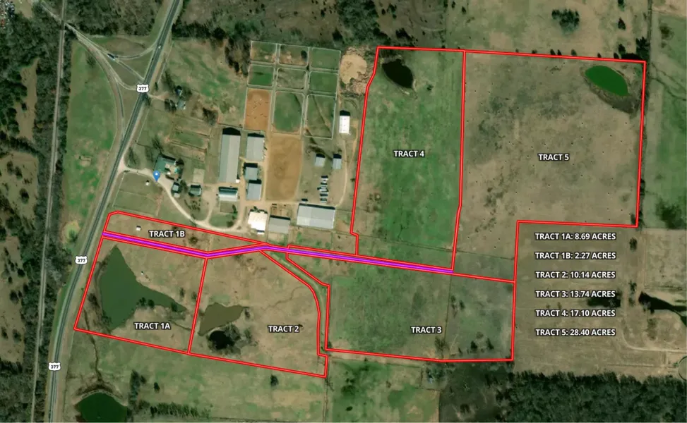REAL PROPERTY: 80+ Acres in the "Heart of Horse Country" on Hwy 377 in Whitesboro TX. The property sells divided in 5 Tracts. As a Buyer you have the option to purchase any Tract, any combinations of Tracts or buy the entire 80 acres. 4 ponds, one each on Tracts 1, 2, 4 & 5. Currently Ag Exempt. Total perimeter fencing and cross fenced. Incredible Location!!!