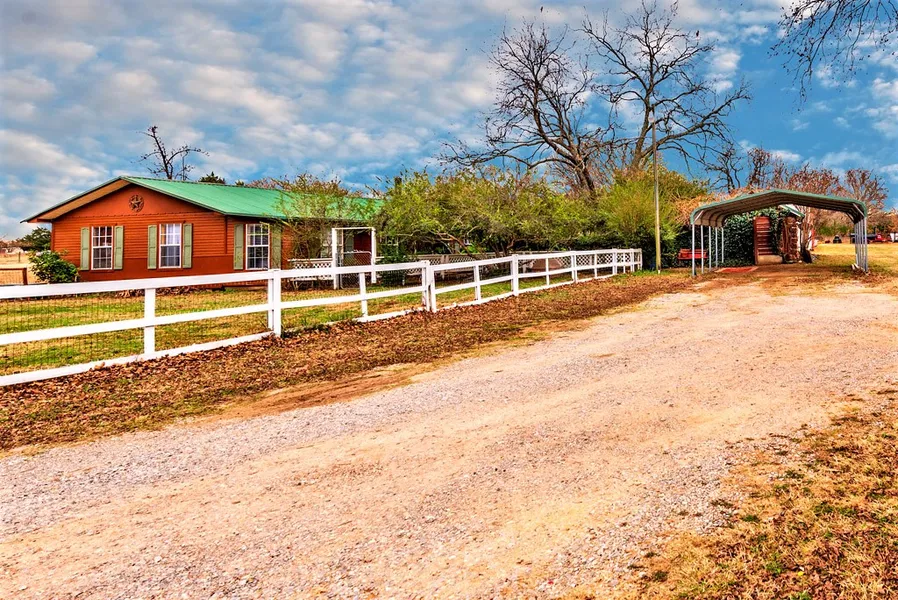 Home with Guest House and large Shop on 1.65 AC, Pretty Large Shade Trees. Charming home with beamed ceiling in living area, large open kitchen. Features large party barn or shop, half bath, separate guest quarters with 2 additional bedrooms and full bath, kitchen and lots of storage. Plenty of room to garden, lots of room to park, build a camp fire and store your boats and RV's. Outside city limits, wood burning stove, Central AC. Chain link fence for pets. White entrance fence. Appointment required, contact listing agent 1 hour notice