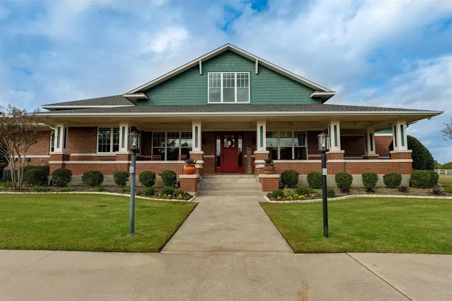 Magnificent Custom Craftsman home on 4 acres near golf and lakes. Warmly welcome your guests on the wrap around front porch and entertain year round by the resort style pool and pergola. Open concept with gas FP, oak hardwoods and stained concrete floors, shades on every window. Chef's dream kitchen with oversized granite island, ss dbl ovens and 6 burner gas stove. Master suite features a sitting area, en suite bathroom, soaking tub, coffee bar, huge closet and private patio. Generous king sized guest bedrooms w WI closets. Tornado safe room in the garage and bonus room upstairs! The big barn is an addt 900 sqft and is outfitted with electrical, and waste drains for an RV, Trailer or Motorcoach. Must see!