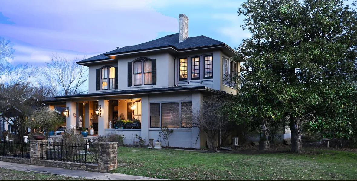 Italian Renaissance Villa w eclectic accents reveals over 4500 SF of relaxing European Elegance. Magnolia Hall named for its bountiful tree in front, Old World stone walls 18”thick w Cast iron gates open to Country English Rose Gardens overlooked by large elevated front porch. Sturdy old school construction w interior walls 13”thick give the structure a powerful presence. While its multi functional layout enables the home to accommodate a range of options including families, couples, small groups as well as rentals from an investment perspective. Form follows Function w the design also incorporating 2 stairways providing Privacy and Community for many endeavors; entertaining, meetings and daily lifestyle. Located on a distinct corner lot over a third acre allows convenient accessibility and just minutes to Historic Downtown Denison w its $85 mil Destination Resort Revitalization including restaurants, wineries, cafes, galleries, boutiques, breweries, museums, entertainment venues, etc.