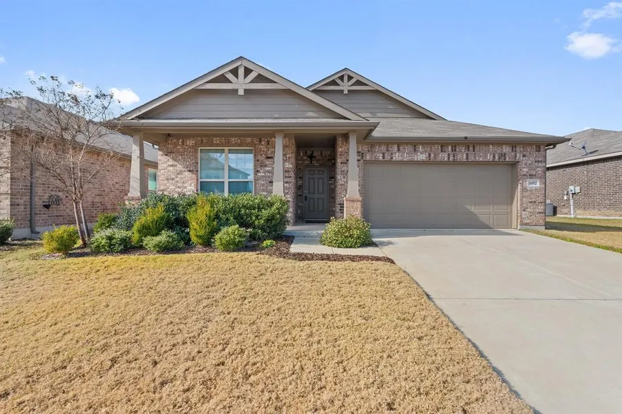 This charming 3-bedroom, 2-bathroom home with a welcoming gable roof porch has been lovingly maintained and is ready for your personal touch. The open-concept design invites you into a bright living and kitchen area filled with natural light. The kitchen features a convenient island and a sliding glass door that opens to the oversized backyard. Outside, you'll find a spacious patio and plenty of room to create your ideal oasis for relaxation and entertaining. Home comes equipped with in ground irrigation and foundation drip system.