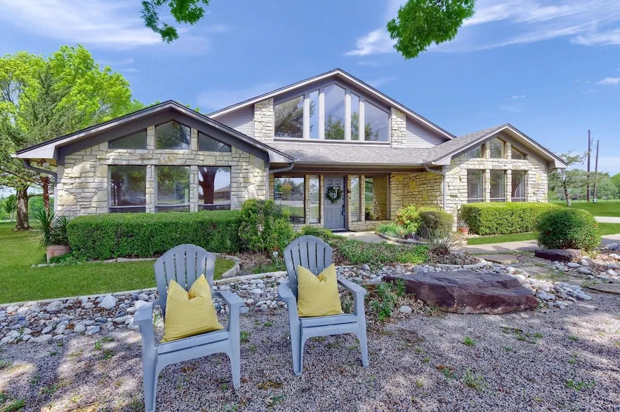 Motivated Seller, Discover serenity in this custom Stone home situated on over 1.2 acres of picturesque landscaping. Revel in panoramic views from every vantage point of this distinctive property. The luminous and expansive living area boasts a striking stone fireplace that serves as the focal point, creating welcoming ambiance. With 3BR, 3 full BA, a well-appointed kitchen with double ovens, island & extra storage, this residence seamlessly combines comfort and functionality. Unleash your imagination and personalize this residence to your match your tastes. Outside, an expansive covered entertainment space and charming deck provide fun for gatherings, mini shop or golf cart garage. In a tranquil setting of Denison TX, just minutes from Lake Texoma and premier attractions, this home offers a peaceful sanctuary away from the hustle & bustle of daily life. Don't miss this remarkable opport...