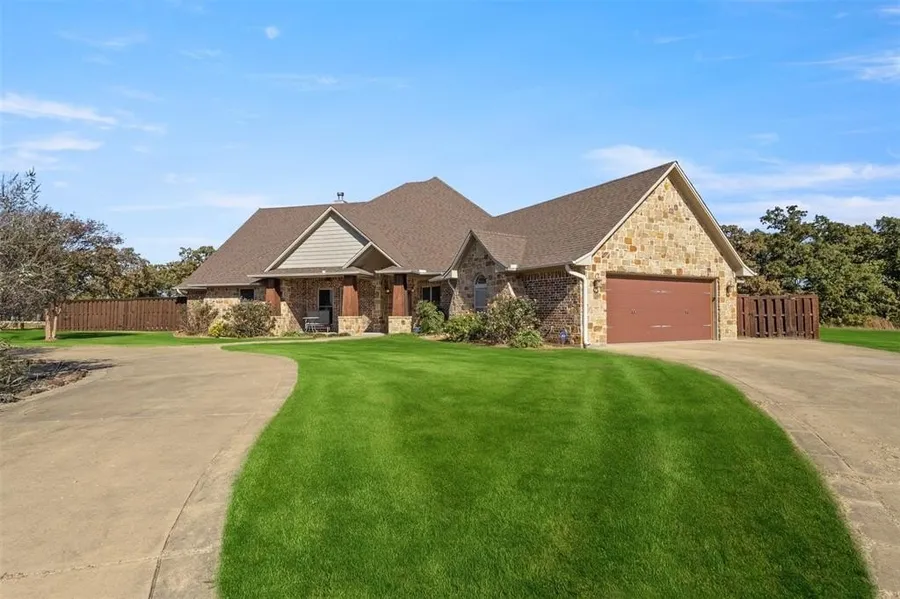 Welcome to this stunning custom lake-view retreat in the gated Texoma Bluffs community of Gordonville, Texas. Set on 2.18 acres overlooking beautiful Lake Texoma and Corps of Engineers land, this 3-bedroom, 4-bath home blends luxury and tranquility. Soaring vaulted ceilings and a wall of windows fill the living room with natural light and showcase panoramic lake views. The gourmet kitchen features walnut cabinetry, granite counters, and an expansive island, perfect for entertaining. The primary suite offers a spa-style bath and a secure walk-in closet. Outdoors, enjoy a covered patio ideal for gatherings, and lush landscaping designed for privacy. Built in 2011, this home delivers energy efficiency and modern comfort. Experience lake living at its finest—serene, sophisticated, and just minutes from Lake Texoma recreation.