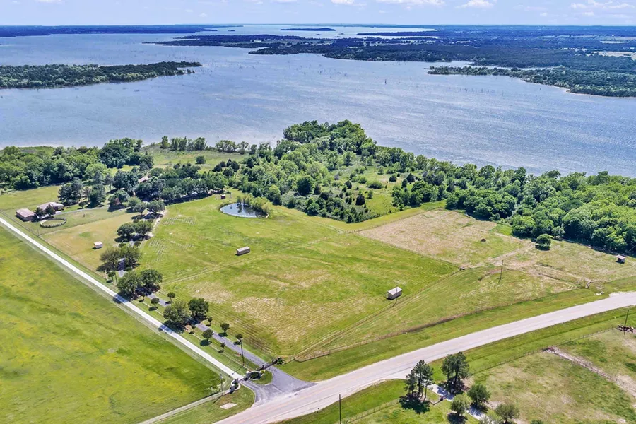 Within a few steps of Lake Ray Roberts and bordered by almost 1,800 feet of corps of engineer land, this eye-catching 13-acre lakeside horse property offers a spacious custom home with inground pool, a 4-stall horse barn and storage building.