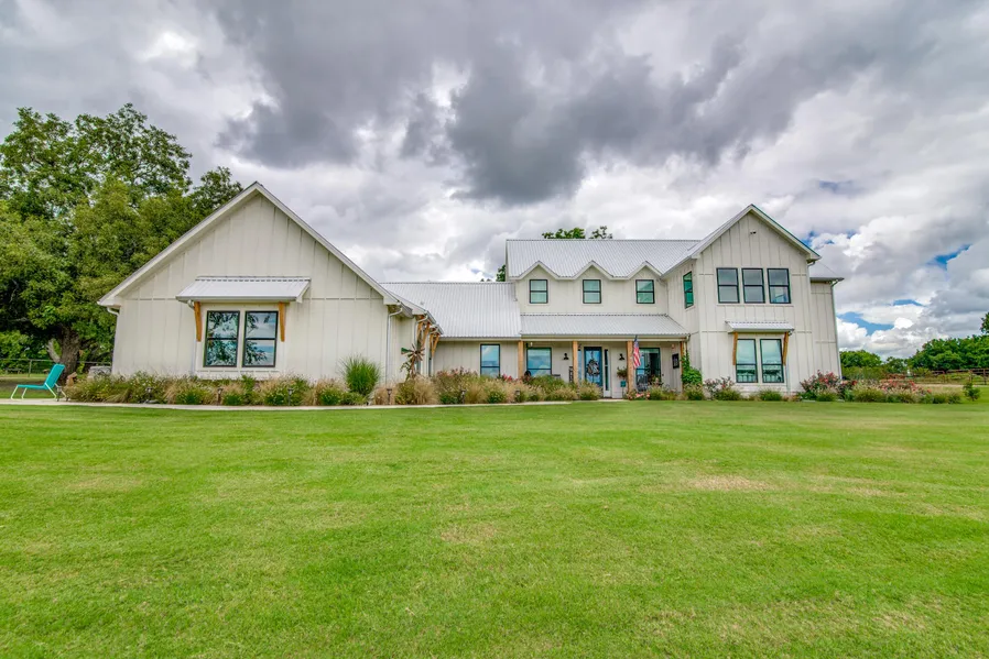 Absolutely stunning modern farmhouse built in 2019 that sits on an amazing spread of 108 acres. The home sits at the hilltop and offers an abundance of upgrades beyond your imagination. Every detail of this home was executed perfectly. The kitchen is a dream, and overlooks the living area. With spray foam insulation and solar panels powering the home, you are extremely energy efficient. The land is cross fenced with huge mature pecan trees. The eastern property border is the Choctaw creek, and has wildlife including white tail deer. Other features include a long driveway with pipe fence, a 40'x50' shop with 25' overhang, 3 ponds, beautiful landscaping, 3 car garage, loafing shed, a windmill and the list goes on