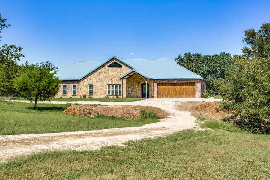 Room to roam inside and out with this custom home situated on 36 private acres. Steel framed with rock exterior, expansive great room with stone fireplace, kitchen with commercial appliances, Miele plumbed coffee maker. Granite island for large get togethers. Master suite is split and has a unbelievable bath that is handicap accessible, large walk in closet with loads of built ins and its own washer and dryer connection. The other end has 3 bedrooms as well as a game area and a study, or 5th bedroom. Large bath with handicap shower and builtins and washer dryer connections. Huge patio at rear of home has great views of stock tanks and pasture below. Property borders creek to the north with some nice bottomland.