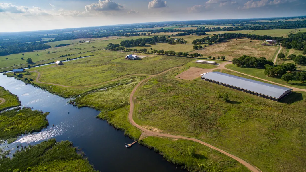 This is a highly improved Horse, Cattle, Hunting or Recreational Ranch which is all High fenced and cross fenced. Previously used as an exotic game ranch and high end restaurant. There is an 8,000 ft. building that was the restaurant which would make a fabulous Lodge. There are two 2400 ft. Casitas with 4 bed and 4 baths in each that overlook the water. There is a 1000 ft. office, a 400 X 150 ft covered arena which also has a viewing area with bath and bar. The arena has a built in shooting range for rifle and pistol. There are 2 horse barns of 120x105 and a stud barn of 145x55. All of the barns are built with concrete tilt up construction. All the improvements we're built from 2010 to 2014. There a several man made waterways and ponds that were professionally built and stocked with various types of fish. The duck and geese are attracted to the ranch with close proximity to Red River an...