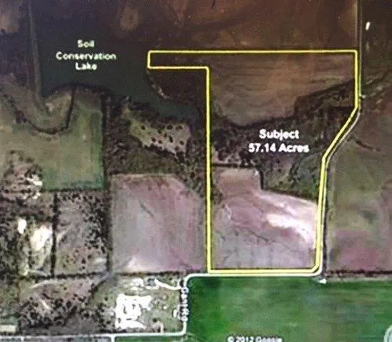 ATTENTION DEVELOPERS! 57 Acres ready for your plans or to hold as investment. Total of 3,236 ft Road Frontage on two sides, with access to a 27 AC Soil Conservation Lake. Site is across the street from rural residential. Co-op water and electric available. The property providesopen pasture, 2 creeks running through the property which will provide enormous profits to a savory business person that can visualize home owners enjoying activities in a park-like setting. You can offer 1 Acre Ranchettes with treed and pasture lots.This property would be easy to develop and subdivide with greenbelt possibilities. Currently undercultivation- Ag exempt.