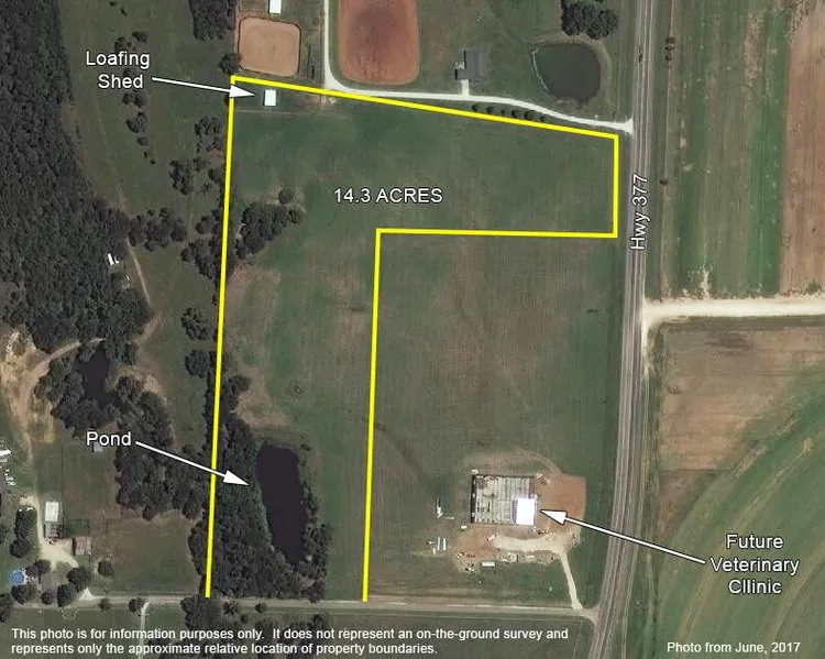 14 acres in the Tioga ISD with State Hwy 377 visibility and access on McDaniel Road.