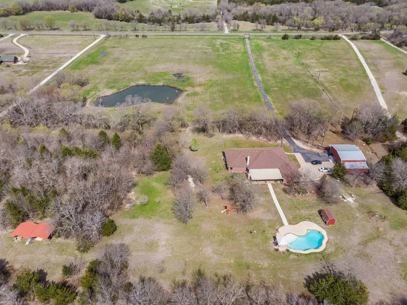 Welcome to Bent Tree Ranch, an estate that's a retreat from the day-to-day. Nestled among the trees on over 16+ acres with a pond, close to amenities & highway access. This highly sought after location boasts a large pool, a 2 story insulated garage & workshop with bonus storage. Recently updated with spray foam insulation, concrete floors & motorized doors. Gorgeous views from the expansive front porch on this nearly 3600 square foot, single story home. Step inside to wood floors, tall ceilings, fresh paint & a modernized & warmly refreshed home with $300k+ in recent updates! Separate office with built ins, a hidden room and large windows. Oversized primary suite with heated tile floors in bathroom & secondary in-law suite with private living space and ensuite bath, perfect for multi generational living. Backyard stone fireplace & covered patio make for year round use of the outdoors. Fiber optics and wildlife ag exemption in place. No know deed restrictions per Underwriting.