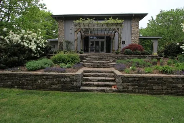 Big, beautifully designed cedar deck in front, large rolling lawn, apple, pear and Cherry Tree's. Back yard features a Wisteria covered pergola and beautiful hard scaped patio and yard. Flower beds with abundant plantings, herb and vegetable garden area, additional side deck. Exceptionally nice 2 car garage that is wired for and could easily be converted into a studio or work shop.