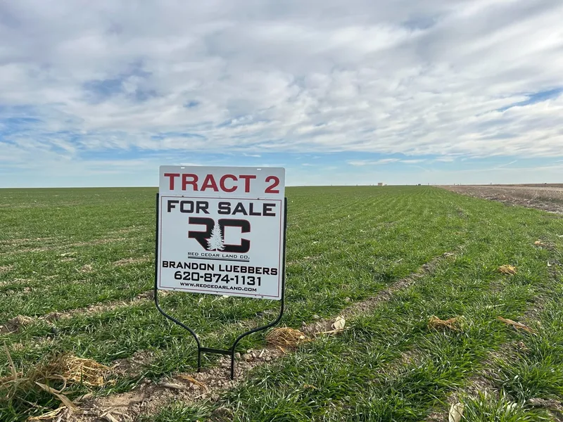 Tract 2: From Tribune Kansas travel west 14 miles and turn north on County Rd. 3. Travel 13 miles north to Road D. Turn east for 1 mile to County Rd. 4. Travel north 2 miles then west 1.5 miles on County Rd B. You will be at the southeast corner of the property.