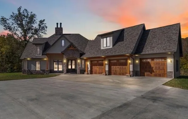 Discover modern craftsmanship and timeless beauty in this brand-new custom home set on 37 acres of serene Kentucky countryside. From the striking stone facade and timber accents to the three-car garage with wood-style doors, every detail has been thoughtfully designed. Step inside to find an open-concept layout filled with natural light, featuring vaulted ceilings with exposed beams, a grand floor-to-ceiling stone fireplace, and rich hardwood flooring throughout the main level. The chef's kitchen is both functional and beautiful, showcasing granite countertops, custom cabinetry, a large center island, and premium fixtures. The primary suite provides a spa-like retreat with heated tile floors, dual vanities, and a luxurious walk-in tile shower. Upstairs, the bonus room offers extra versatility-perfect for a home office, guest suite, or hobby space. The home is designed for comfort and ene...