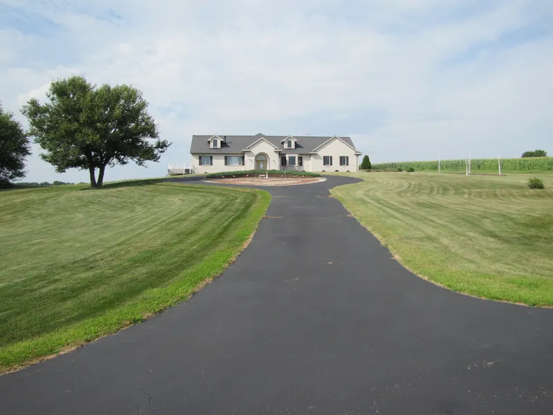 All brick home on 6.28 acres with a view of Green County's rolling countryside. This home has lots of privacy with a long driveway, and is tucked into the hillside with a beautifully landscaped and well maintained lawn. There is a large kitchen designed by the well known Bauman's Kitchens and an open floor plan to the dining room, living-room, and sitting room. Two bedrooms are upstairs with a loft that is insulated and ready to be finished with two more bedrooms or a rec room/office. Additional space in the basement for an office or bedroom, and plenty of room to build a shed!