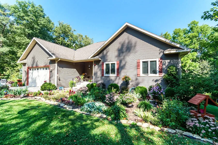 Beautiful Ranch with walk-out lower level nestled off the main road on 5+ wooded acres! Main floor 3 BR, 2 BA, open concept between living room/kitchen featuring wood floors, granite counters, large kitchen island, gas range, hickory cabinets, knotty alder doors. Main floor laundry as well as a large main floor screened in deck for relaxing/entertaining while enjoying the serenity of the nature around you. Energy efficient Geothermal HVAC with fresh air/heat recovery system. Super insulated with spray foam insulation to save $ Walk out lower level has room to expand with your touches & bathroom is already framed/stubbed in, also already plumbed for in floor radiant heat. Big workshop in lower lever is set up including double walk out doors. Outside you will find a 24x28 additional garage.