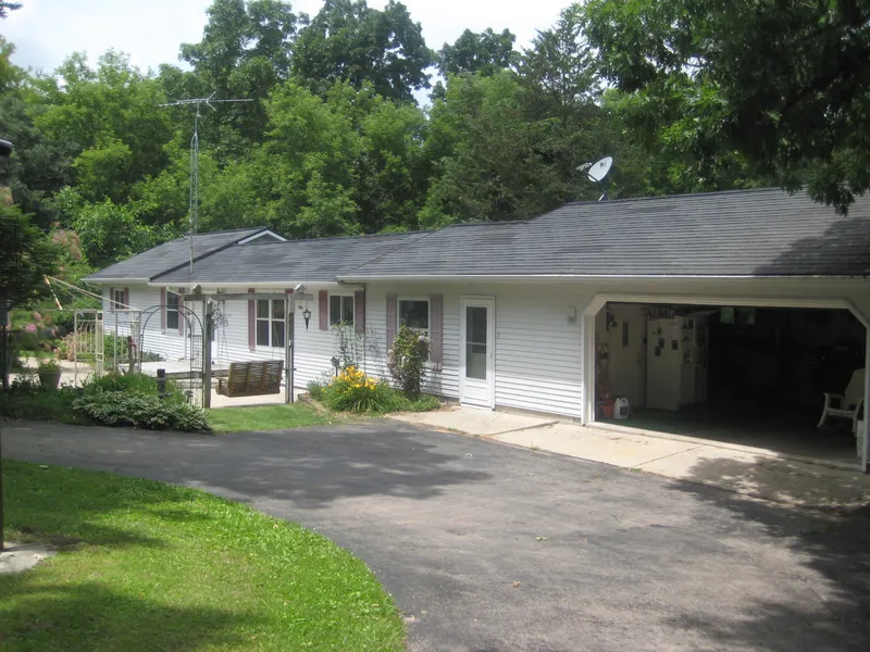 This property has the Outdoors-man/woman in mind! Enjoy the 4.5 acre wooded parcel to view all kinds of wildlife or take a leisurely stroll down the path to the shores of Lake Puckaway! The home offers an open concept, vaulted ceiling, 3 seasons room, lower family room with a gas fireplace and a walk-out to the backyard. There is an attached and heated 2 car garage, detached 24x32 and 12x18 buildings and a garden shed. New steel roof approximately 6 yrs ago with 50 yr warranty. Enjoy the brick patio or the large fire-pit area. An Incredible Property!