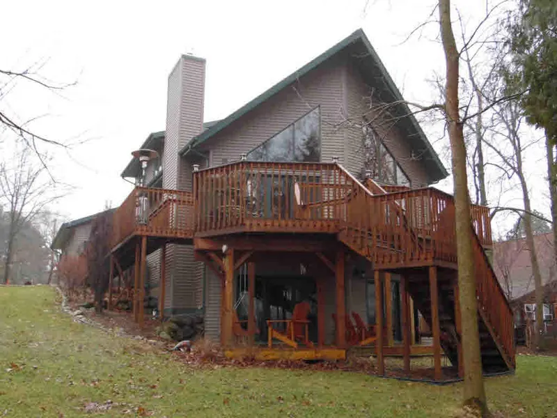 3BD, 3.5BA WATERFRONT home w/ 97ft of Fox River shoreline(boating access to Lake Puckaway).Open floor plan...KIT. w/ granite counters, glass front cabinets & island. LR w/ gas FP, vaulted wood ceiling, wall of windows to expansive several level deck. Open stairs to loft, 2 BDs & FULL BA. LL includes FR w/ gas FP, bar area, office, FULL BA & covered walk out deck. Garage is heated w/ workbench.