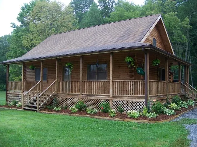 Raders Valley Cabin. Charming log home with 8 acres of forestland & meadow. Surrounded by rural farmland & forest, this 5 bedroom home has many features for comfortable living including hardwood floors, open kitchen with all appliances, gas log fireplace, wrap around porch, & a hot tub. Perfect setting for a garden.