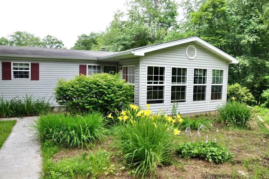 This well-kept prefabricated 3-bedroom home on 3.6 acres in the Butler Mountain area of Greenbrier County offers true country living at an affordable price. Tucked in the woods and surrounded by day lilies, mountain laurel, ferns, a trellis with a clematis vine, planters and seasonal shrubbery, the home has gray vinyl siding and red shutters, and a matching detached 2-car insulated garage with built-in workbenches and plenty of storage space. A gardeners delight, the property is just down the road from a farm that sells fresh produce at the local farmers market and has a pick-your-own-blueberry patch.