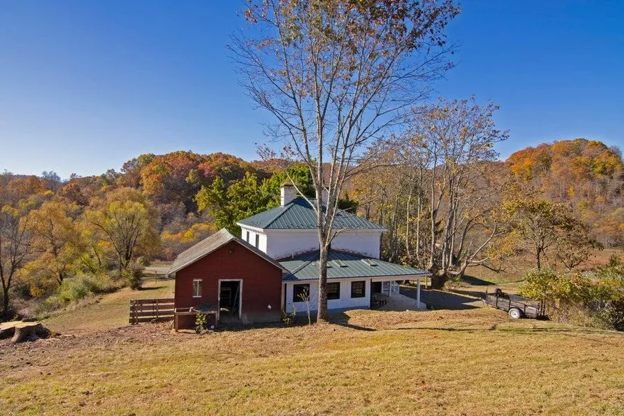 Excellent opportunity, 1860s-era country home with four bedrooms, 1.5 baths, and 2008 sq. ft. Located a short drive from Lewisburg, this is a fantastic location for someone who wants to live in a farming community and, if necessary, to live off-grid. This 5-acre property includes a historic brick home with five wood-burning fireplaces. The private location has access via a private lane. The house has five fireplaces and a spring and would be easily convertible to off-grid living. Much of the work for preppers is done. Included are a barn, outbuildings, and a root cellar. Most of the remaining work is cosmetic. Recent renovations include cherry-insulated pane windows, a metal roof, Generac, cherry-insulated pane windows, a new drilled well, and solid cherry trim galore, and more. The home has four bedrooms and 1.5 bathrooms and includes approximately 2008 sq. ft. of living space, according to public records. The front porch is a great spot to enjoy the country with shade from a tree.
