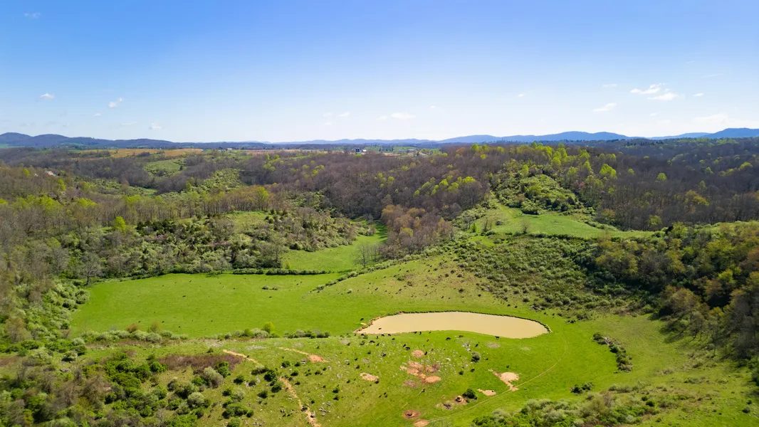 From end to end, as the crow flies, this farm is over two miles long and encompasses a highly diverse topography. The farm contains numerous ridgelines, several watersheds, multiple mountain tops, and a long sinuous flat valley with large fields. One of qualities that makes this property really special is the ability to find tranquility. Because the property is so expansive it is easy to find peace away from the hustle and bustle of life while walking the ridgelines under a hardwood tree canopy, following a stream flowing down over bedrock in a secret valley, or watching clouds pass in the middle of an upland meadow. There are several excellent homesites but there is a special spot on top of a flat knoll along an established farm road that overlooks the valley that make it an incredible location for your dream home.