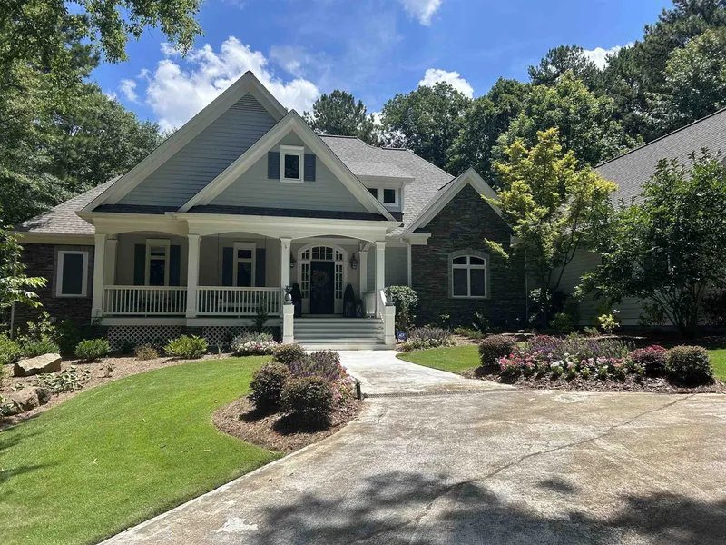 This stunning custom home overlooks the 8th fairway and green of the National golf course at Reynolds Lake Oconee. The home has 6 bedrooms, 5 full bathrooms and provides more that 6,000 square feet for your family and friends to enjoy tranquility with endless entertainment options. Recently redesigned and remodeled with updated finishes, this expansive home comes fully furnished (with a few personal exceptions) for a turnkey move. The large lot is full of mature trees and is professionally landscaped and maintained. The traditional southern architecture begins with a welcoming front porch, complete with a swing. From the entry foyer throughout the main floor, the elegant millwork and hardwood flooring lead you to an incredible open floor plan with soaring ceilings and spectacular floor-to-ceiling windows overlooking the serenity of your landscape and the golf course. A gas log fireplace ...