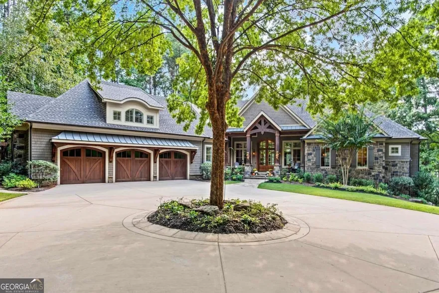 YOUR LAKE FRONT PARADISE at Parrotts Pointe neighborhood of Reynolds Lake Oconee, just minutes from the Ritz Carlton, Lake Club, and other world-class amenities. This custom-built estate offers over 7,000 square feet of thoughtfully designed living space, perfectly crafted for families and future generations to enjoy. As you arrive, the lush landscaping immediately sets the tone for the privacy and beauty this home offers. Upon entry, be greeted by soaring ceilings, a floor-to-ceiling stone fireplace, exposed wood beams, and an expansive screened porch overlooking the serene lake views. The spacious great room and dining area are perfect for gathering and entertaining, with an effortless flow that complements large family gatherings. The gourmet kitchen boasts high-end appliances, a generous island, custom cabinetry, and ample storage for those who love to cook together. Adjacent to the ...