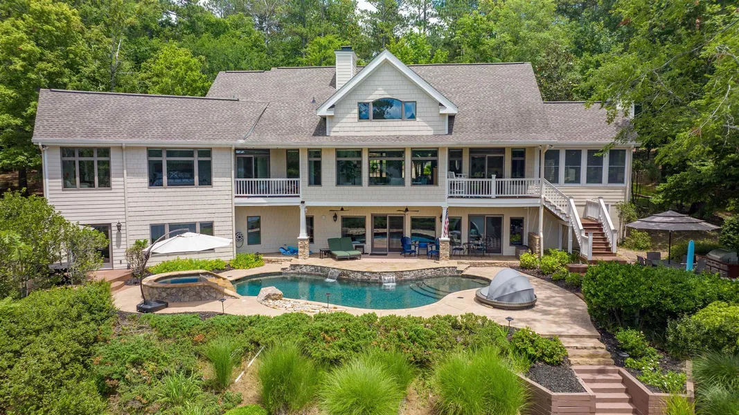 SIMPLY REMARKABLE LAKE OCONEE HOME ON 1.75 ACRES OF LUSH, UNRIVALED PRIVACY -WATERFRONT & GOLF COURSE LOT! SPECTACULAR VIEWS! LOT IS ACTUALLY 2 COMBINED, THERE IS ROOM FOR A GUEST HOUSE TO BE ADDED. SUCH PRIVACY THE HOME CAN'T BE SEEN FROM THE STREET. COME DOWN THE PEACEFUL CIRCULAR DRIVEWAY, PAST THE DOLL HOUSE, TO TAKE IN THE LOVELY EXTERIOR OF THIS HOME & ENTER INTO THE SERENE ELEGANCE OF THE GREAT ROOM WITH SWEEPING VIEWS OVER THE RESORT LIKE POOL, THE LAKE, & TO THE GOLF COURSE BEYOND. AMAZING ARCHITECTURAL DETAILS DELIGHT EVERYWHERE YOU LOOK - RUGGED WOOD BEAMED CEILINGS, NEW EFFICIENT CLEAN LINED COOKS KITCHEN, INVITING SUN ROOM, PRIMARY SUITE WITH A SPA LIKE BATH, LARGE OFFICE & BONUS SPACE. DOWNSTAIRS OFFERS A DEN THAT OPENS TO THE CHARMING POOL & SPA, & OUTDOOR COOKING AREA, 2 BEDROOMS & A BONUS SPACE PERFECT FOR A MEDIA ROOM, SMALL BUNK SPACE ATTACHED. WORKSHOP & STORAGE FOR LAKE TOYS, NEW 7,000# LIFT AT THE MAX DOCK. THIS HOME IS NOT TO BE MISSED.