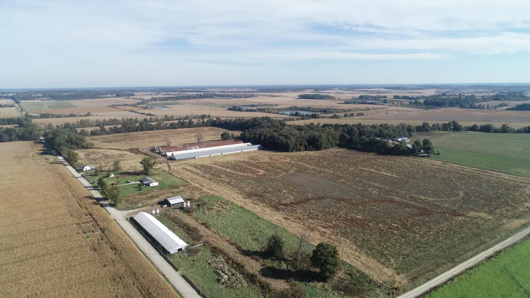 62 acre tract of mostly tillable with road frontage along 900 W, as well as 300 N which makes great access to every part of this property. There is a home, and former turkey grow-out buildings available for purchase as well.