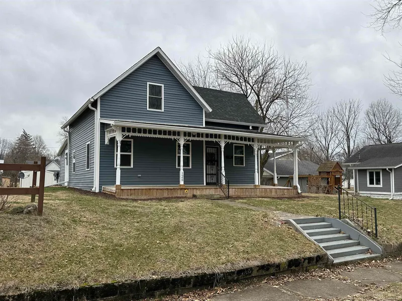 Affordable, move in ready, story and a half house with 1500 square feet located in the heart of Worthington. This 3-bedroom, 1 bath home w/ loft has been renovated and updated. Large front porch with original 100-year-old gingerbread character. Master bedroom and small second bedroom or office space are on the main level. Designated laundry/mud room with exterior entrance. Good size eat-in kitchen, with designated pantry, appliances included. Upstairs you will find a large loft space before entering another bedroom. Upgrades including vinyl siding, windows, roof, 200 amp electrical service, plumbing, drywall, flooring. Nice city lot, house is situated above street level, one car garage with new garage door accessible from the alley.