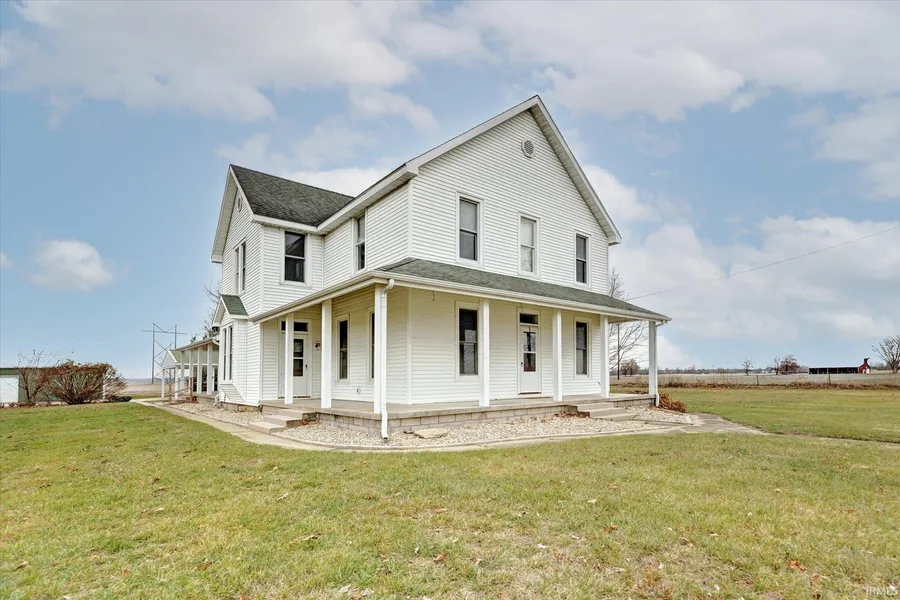 Greene county living at its finest! Step into the charm of a two-story farmhouse nestled on a scenic 1-acre lot in the prairie just outside Worthington. This 1900's home, spanning 2,448 square feet w/ 10' ceilings, exudes character & craftsmanship. The wrap-around front porch beckons a porch swing, offering a perfect spot to relax. A two-car detached garage with rec room in addition to the 2-bay carport add convenience for all. Inside, 4 bedrooms, 2 bathrooms, & a large open eat-in kitchen with Oak cabinetry. The formal dining room sets the stage for gatherings, while the family room boasts an original fireplace and Victorian spindled doorway. Hardwood floors, original trim, & vintage hinges/knobs showcase the home's allure. The formal living room offers more room to entertain or transform into a main-level master suite. Modern upgrades include a new septic system & a secondary HVAC system for the upstairs. Save on utilities with FREE natural gas rights fueling the stove, HW heater, dryer & 2 furnaces. Home also offers partially unfinished basement w/ exterior entrance, garden shed, and some professional landscaping established around the home, just add plants!