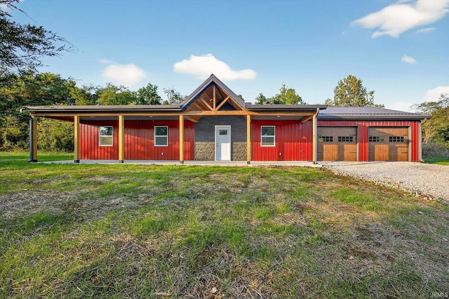 Discover the perfect blend of modern comfort and country living with this brand new 3 bedroom, 2 full bath barndo-style home set on just over 8 acres. Featuring a nice spacious open floor plan, this home was designed for easy living and entertaining. The large living area flows seamlessly into the kitchen and dining space, creating a bright and inviting atmosphere with plenty of natural light. Built to last, the home features durable metal roofing and siding, all-electric utilities, and energy-efficient design throughout. Enjoy peaceful mornings and relaxing evenings from the large covered front and back porches overlooking your private acreage perfect for watching wildlife or taking in the country views. With its functional layout, stylish finishes, and plenty of room to roam, this property offers the best of new construction with that sought-after barndominium charm.