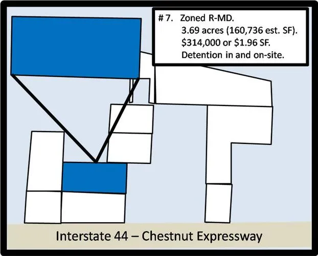 # 8. Zoned HC. 481’ West Chestnut Expressway frontage. 3.80 acres (165,528 est. SF). $424,000 or $2.57 SF. Detention in and on-site.