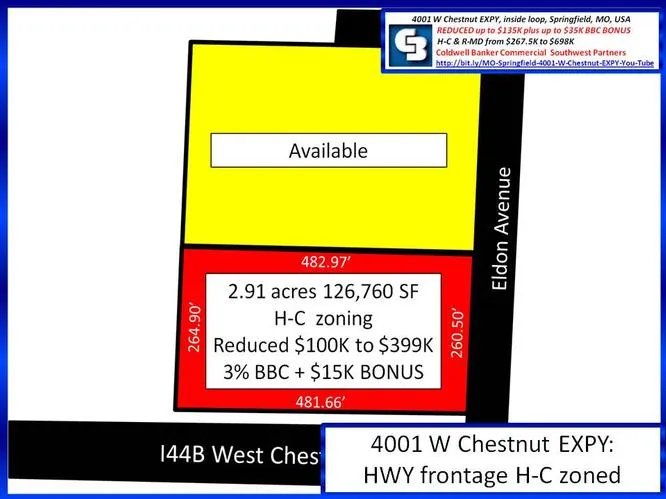 This listing is for 2.91 ac with 482 frontage zoned H-C of 4001 W Chestnut Expressway.