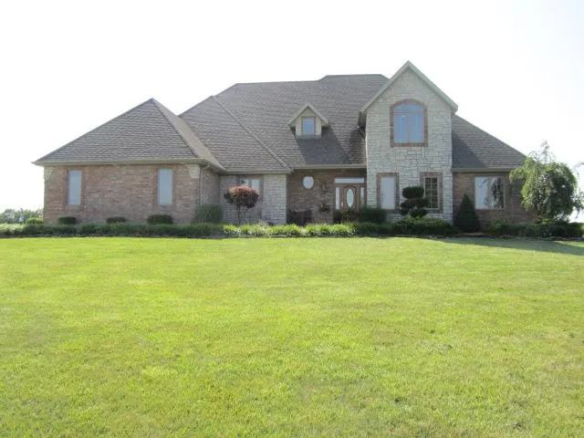 Custom constructed, all brick home built in 2003 rests on a gorgeous 15+ acres with year round Pond. This two story beauty boasts an expansive main level that includes Formal Living Room with gas fireplace, an Office/Den with wall to wall built-in bookcases and a HUGE Family room with vaulted ceilings, beautiful stone fireplace and hardwood flooring. The Kitchen/Dining combination features granite countertops, with tiled backsplash and floors with a large Laundry Room with great cabinet/counter space and sink adjacent. The spacious Master Bedroom Suite has room enough for a sitting area and has a see thru gas fireplace to the luxurious Master Bath. An additional main level Bedroom Suite with built-in desk/cabinetry and Full Bath. The upper level of the home features two generously sized Bedrooms with a Full Bath nearby. Detailed features throughout the home include: solid wood doors and pocket doors, crown molding, upgraded lighting and plumbing fixtures with custom window treatments throughout the home. A covered Patio with door access from the Master Bedroom and Kitchen/Dining overlooks the gorgeous setting! The property includes a 20'x12' Storage Shed and a 50'x30' Barn with two 15'x12' stalls, 220 electric service and water. This picturesque 15 acres features a year round Pond with a Duck Blind on the property also.