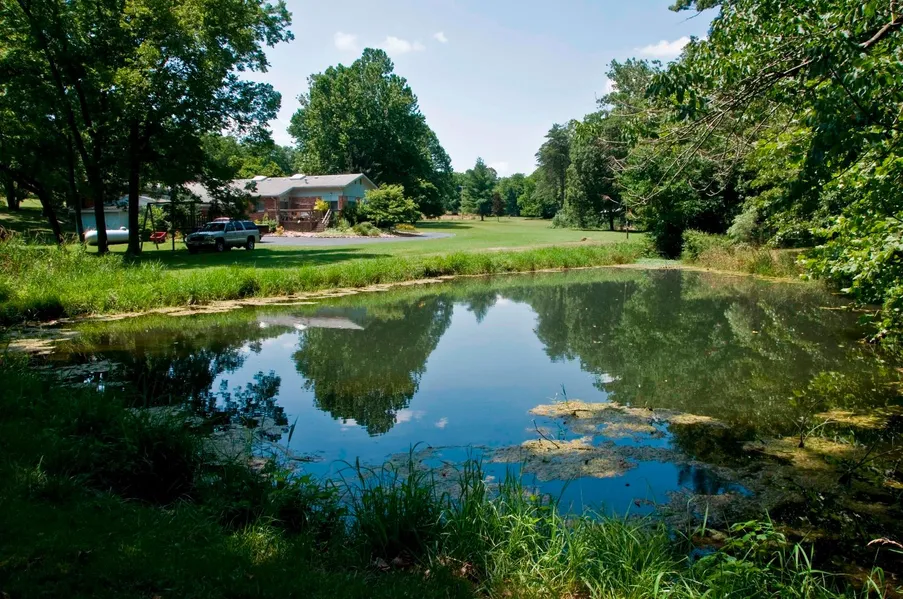 Rare Offering! This all brick rustic, contemporary home sits in a protected valley with 79 acres, making it very peaceful. The home has two wood burning fireplaces that are back to back, an open floor plan making the home very spacious, volume beamed wood ceilings, numerous windows throughout the entire home, and a walk-in pantry that would make any chef happy. This home also has an indoor pool (18 x 30) with a whirlpool and guest suite. There is also a shaded picnic area that is just off of the home; a great place to entertain friends and family. The property has a good year round spring that flows into a nice sized pond that can be seen from the deck. Throughout the 79 acres there are rock formations, great views, wildlife and more. There are barns on the property and an equine facility. Some of the property is fenced. The seller might sell with less acres. Call listing agent for more details of this one of a kind property!