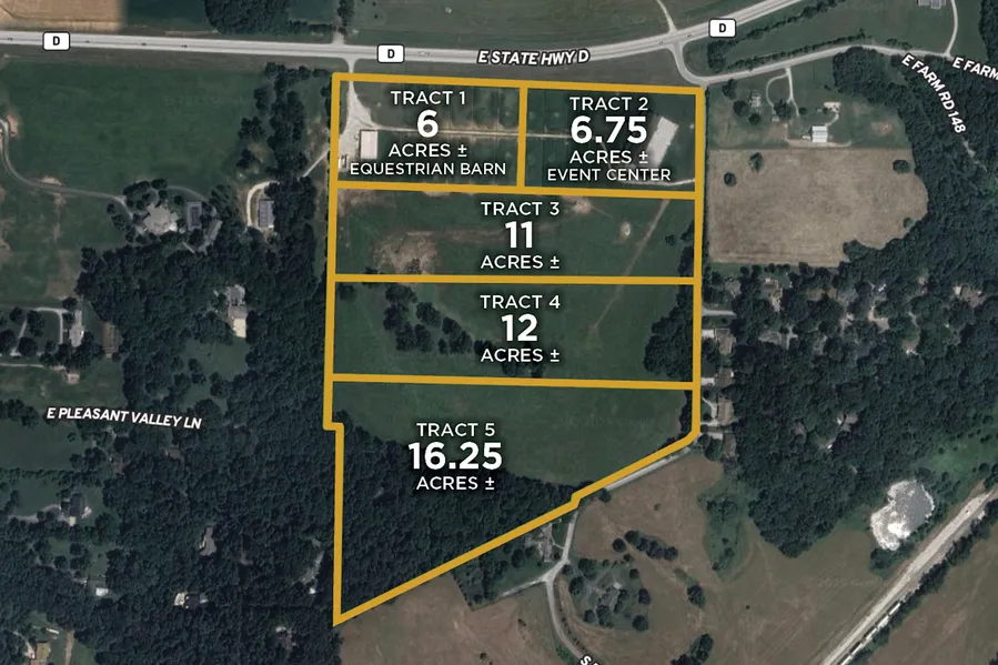 Welcome to Soaring Eagle Farms a unique equestrian and livestock legacy property, featuring a stunning 15,000 sq ft event center/sale barn with custom finishes, a 6,000 sq ft equipment barn, and extensive livestock facilities all located under two miles from East Springfield. The farm improvements consist of 14 large pipe paddocks with auto waterers, internal feeding lanes, and numerous turnout pipe paddocks. Additionally, there are nice pipe corrals connected to the sale barn and a large pasture for open grazing and hay production. This mostly open land lays very nicely and is in a prime development area with a quarter-mile of East Sunshine road frontage and 0.35 miles of South B...