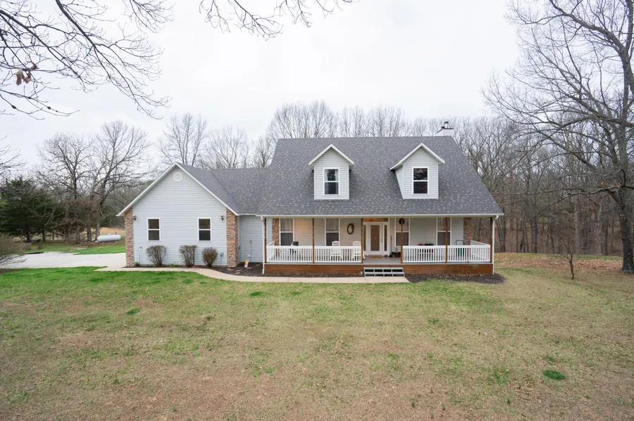 One look and you'll be hooked! Enjoy your morning cup of joe on the back deck watching the wildlife and afternoon tea on the expansive front porch with a good book! Just under 4000 sq ft and perfectly situated on 7.8 acres this home has it all. From the moment you walk into the inviting foyer, you'll feel right at home! Large living and dining areas will accommodate large gatherings. The kitchen has amazing cabinet and counter space with seating around the snack bar and a center island. Also on the main floor is the primary bedroom, en suite and large walk in closet. The main floor is all hard surface flooring. Upstairs there are 2 large bedrooms, bath and a sitting area. Both bedrooms have 2 closets. The basement has two separate living areas, a bedroom and bathroom. You won't believe all the storage space in this home. You're sure to stay cozy in this home as it offers 3 types of heat,...