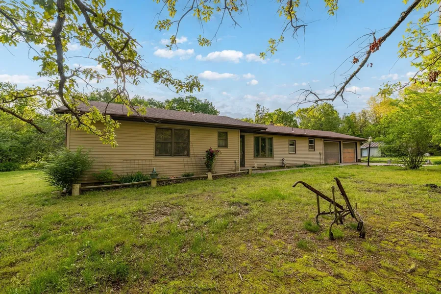 If you're looking for a private setting within a 30 minute drive of downtown Springfield, then this is your place! Nestled in the middle of 60 acres you'll find a comfortable ranch style home surrounded by woodland and no view of your neighbors. The home has 3 bedrooms, 2 full bathrooms, a spacious living room (23 x 15) and an additional room that could be used as a home office or hobby room, and leads to a large covered screened patio on the back. There's a two car attached garage as well as a detached garage/storage building. The land is mostly fenced, heavily wooded, and has a spring and wet weather creek. Approximately 12 acres along the highway frontage is open pasture land and a great space for a few farm animals. Behind the house is a small barn/loafing shed and animal enclosure. Located in the Willard School District, near corner convenience store, and easily accessed by state highways Z and BB.