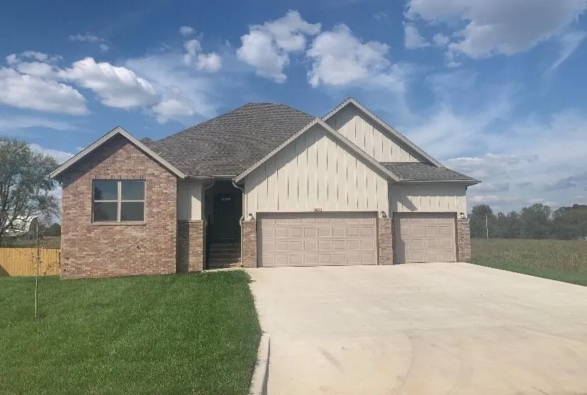 BASEMENT, NEW Construction, NEW Subdivision, FENCED in backyard, FULL sod and irrigation! Located by the Republic High School, minutes away from Hwy 60! Estimated Approx 3376 sq ft. Large living area with open living room/kitchen. 5 BR, split BR plan, 3 bath, 3 car garage. Large master bath walk in closet and dual master vanity. Energy Star Certified Home. Richly stained, knotty alder cabinets. Quartz countertops, Brushed Nickel hardware & fixtures, Eider White interior paint Buyer due diligence on specific school district. Interior pictures are not of the exact home, but similar finishes.