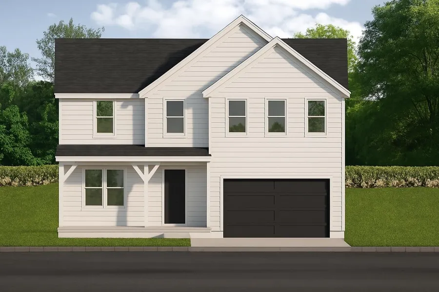 Welcome to The Edgewood, a beautifully designed four-bedroom, 2.5-bath home that offers modern style and comfort. The first floor features a bright living room, an open kitchen with a large island, a convenient half-bath, and a flex room. A two-car garage provides easy access and extra storage. Upstairs, the spacious primary suite includes a luxurious en-suite bathroom and a walk-in closet. Three additional bedrooms, a full bath, and a laundry room complete the level, ensuring convenience for everyday living. With a functional layout, The Edgewood is the perfect home for modern living.**Disclaimer: Photos may include renderings and representations of similar floor plans. Actual finishes may vary.**