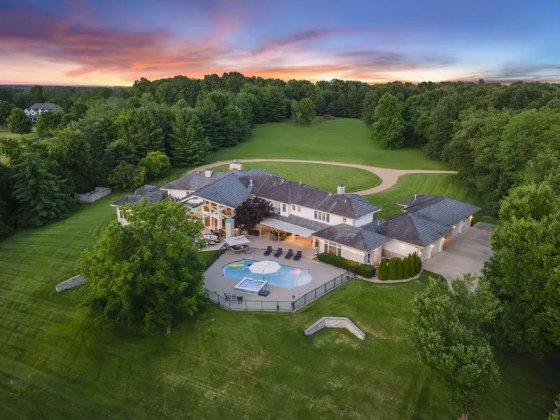 Classic elegance meets modern luxury on nearly 10 gated acres in one of Springfield's most coveted locations. Designed for those who demand excellence in every detail, this 7,405 SF estate offers an unmatched blend of sophistication, privacy, and resort-style amenities. The estate features 5 generously appointed bedrooms, each with its own private en-suite, along with 6.5 lavish bathrooms. Impeccable craftsmanship is on full display with 8-foot solid doors, travertine tile flooring, commercial-grade synthetic stucco and stone exterior, and 2x6 construction throughout. Step inside to a dramatic grand foyer with a sweeping staircase and a wall of windows that bathes the home in natural light. The formal living room boasts a see-through fireplace, one of five gas fireplaces found throughout the home. Entertain with ease in the open-concept main floor featuring a chef's kitchen with stainles...