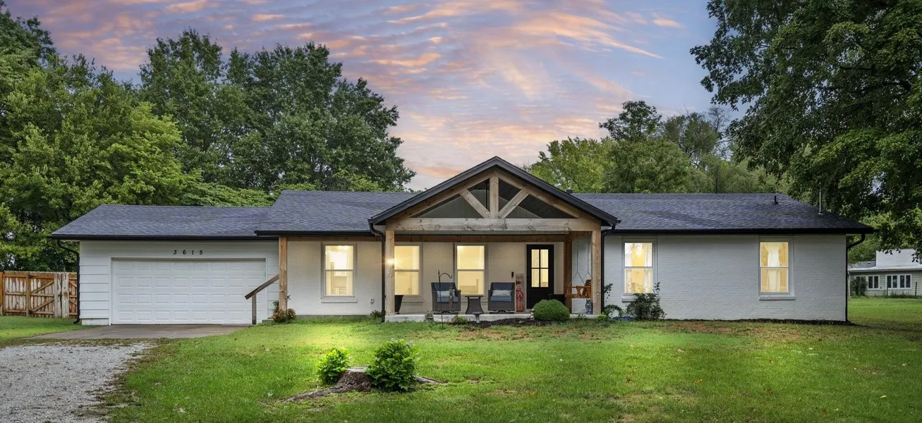 Pride in ownership shines in this midcentury modern gem that's been thoughtfully remodeled with quality & convenience in mind. Spanning nearly 2700 sq ft all on one level, this 3 bedroom 2.5 bath home is better than NEW with luxurious upgrades for enhanced living. The mood is set from the moment you arrive onto the 350 sq ft covered front porch & continues with the warmth of natural light & design features. Recent enhancements (less than 1 year) include a NEW roof, gutters & soffits, 6' wood privacy fence, tankless water heater, water softener, encapsulated crawlspace, sump pump, additional attic bracing/flooring & updated electrical. But it doesn't stop there. The front living room flows into your dining & kitchen area featuring shaker style cabinets, timeless subway tile backsplash, leather finish granite & all stainless appliances. The hearth room has 2 pantries + expansive countertop perfect for a coffee/wine bar opposite a black brick fireplace with rustic wood mantle making it a multifunctional space. Your primary bedroom offers 2 expansive walk-in closets with custom organizers to accompany your remodeled ensuite featuring a new walk-in shower with high-end rain head faucet, inline heated jetted tub, dual granite top vanities & skylight. Two additional bedrooms & hall bathroom with new walk-in shower complete the original footprint. But we saved the best for last, the heart of the home, your massive family room with vaulted ceilings & wall to wall built-ins encompassing a 25' brick fireplace. Whether it's nuzzling up to the fire with a good book or football on Sunday, this space is only limited by your imagination. Other perks include: sunroom, hot tub & raised garden. This highly sought-after east of 65 location is less than a mile to Costco, Menards, Hickory Hills Country Club, restaurants & hospitals. So take a seat on your new porch swing to enjoy the crisp fall air & watching the leaves change just in time to host family & friends this holiday season.