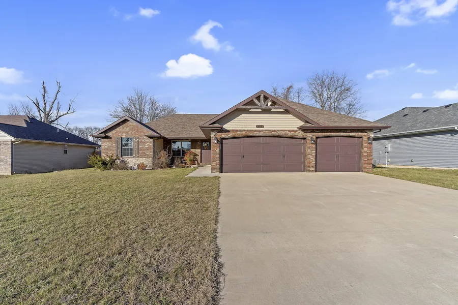 OPEN SUNDAY, JANUARY 18TH FROM 2 - 4. This custom-built home greets you with a cozy front porch and opens into a living room filled with natural light. Highlights in this home are tall ceilings in the living room, huge kitchen pantry with lots of shelving, kitchen bar area, extra spacious laundry room, granite countertops throughout, custom wood cabinets and mudroom hallway off the garage. The master bathroom includes double sinks and a walk-in closet. Step out back under a covered patio and privacy fenced yard. This property is located with quick access to I-44 /65 Hwy and just minutes to Springfield.