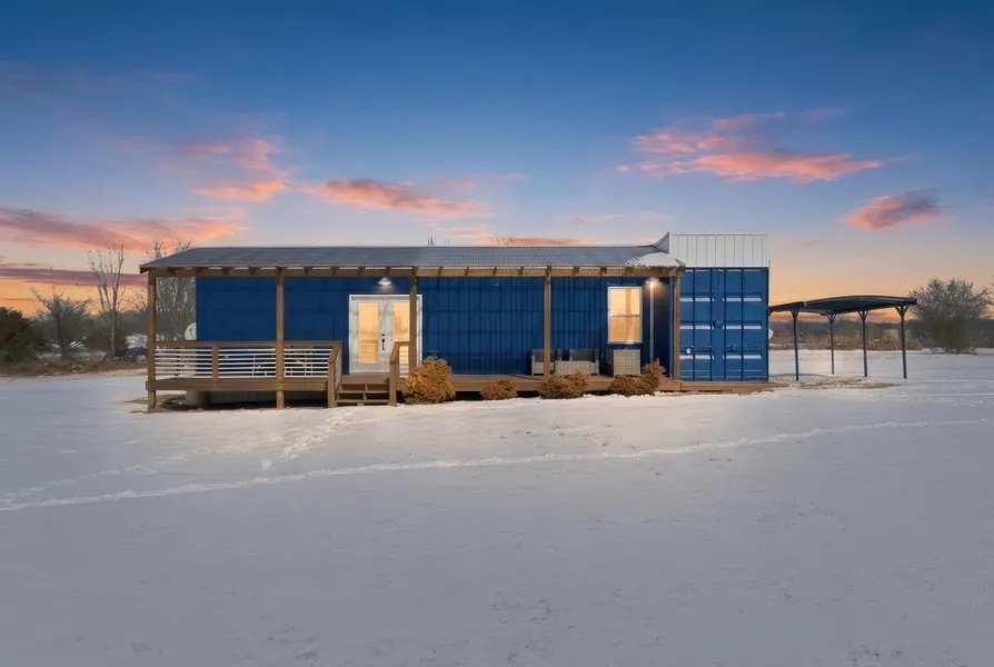 Welcome to 5589 W Farm Road 104! A one-of-a-kind container home on 10 open, partially fenced acres with a stocked pond, offering modern efficiency, land, and investment potential. This 480 sq ft home is permanently set on a solid foundation supported by concrete pillars approximately 8 feet deep, providing long-term stability. Interior features include a private bedroom, full bathroom with walk-in shower and spacious closet, stainless steel appliances, modern appliances, and electric mini-split systems for year-round heating and cooling. The underside is fully insulated with high R-value spray foam and includes an additional skirt frame to enhance heat retention and cold-weather protection. The property includes a covered porch with views of open land and water, a private well with protective shed, and a septic system. The home is well suited for a single occupant or couple, and also offers potential for a rental, travel nurse housing, or other investment purposes. A rare combination of acreage, functionality, and flexibility.