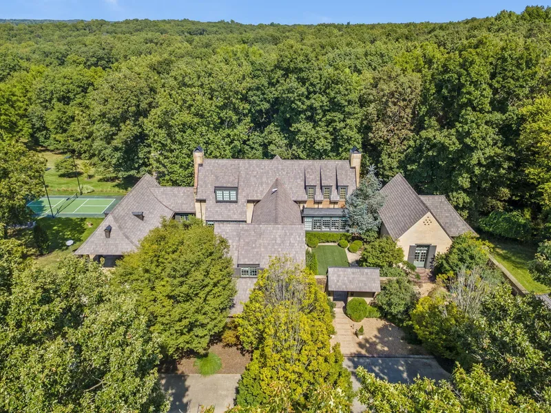 Designed by renowned architect Bobby McAlpine and featured in his book, The Home Within Us, this extraordinary estate presents a rare opportunity to own a one-of-a-kind property. Tucked behind the gates of the highly sought-after Stonegate Estates, this European country retreat sits on 5 private acres and backs to the neighborhood's 3-acre stocked lake. Constructed with insulated concrete and rebar, a slathered brick veneer, and a DaVinci roof (2024), this home blends its beauty with exceptional quality. From the moment you enter, the craftsmanship is undeniable. The detailing in the wood planked floors, walls, and ceilings create timeless elegance for this authentic French cottage ambiance. The kitchen features double islands, large pantry, and built-in fine china cabinet. Appliances include two Sub-Zero refrigerators, a Wolf six-burner range and oven, and an adjacent butler's pantry with ice maker. The main living room is centered around a beautiful gas fireplace, ideal for relaxed gatherings. Main-level primary suite offers a walk-in closet and a spa-inspired bath with heated floors, dual vanities, steam shower, and private courtyard access. Upstairs you'll find two ensuite bedrooms with walk-in closets. The lower level includes an ensuite bedroom, media lounge with projector, custom bar and your very own wine cellar. Additionally- over 1,000sqft. of unfinished space offers endless possibilities for an additional bedroom, game room or a private gym . A covered walkway from the main home leads to a separate guest suite, perfect for visiting family and friends. Outside enjoy multiple landscaped courtyards, a heated and cooled oversized three-car garage with attached workshop. End your evenings playing pickleball or taking in the stunning views from the lakeside pavilion! With quick access to HWY 60/HWY 65, this estate offers elegance, privacy, and a lifestyle like no other. Call to schedule your private showing and see the full list of home features.