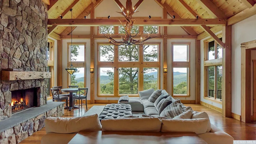 Stunning home offering peaceful and spectacular living. Dreaming of leaving the stresses of everyday life behind and escaping to your own private retreat? This spectacular home boasts 7,332sqft of living space, 6 bedrooms, five full baths, two half baths and breathtaking mountain views from every room. Nestled on more than 16 acres of picturesque land surrounded by Forever Wild Forest in Windham's most sought-aftergated community, this is an opportunity not to be missed. The home features a timber-peg construction and character-filled features along side the very best in modern luxury. The custom kitchen is stunning, complete with high-end appliances, ample cabinetry and a large island.There are exposed timbers throughout the home along with soaring vaulted ceilings and two fireplaces, one in the great room and the other in the luxurious first-floor master ensuite with access to a private deck. Other features include 200-year-old wide-plank reclaimed floors and a new roof.