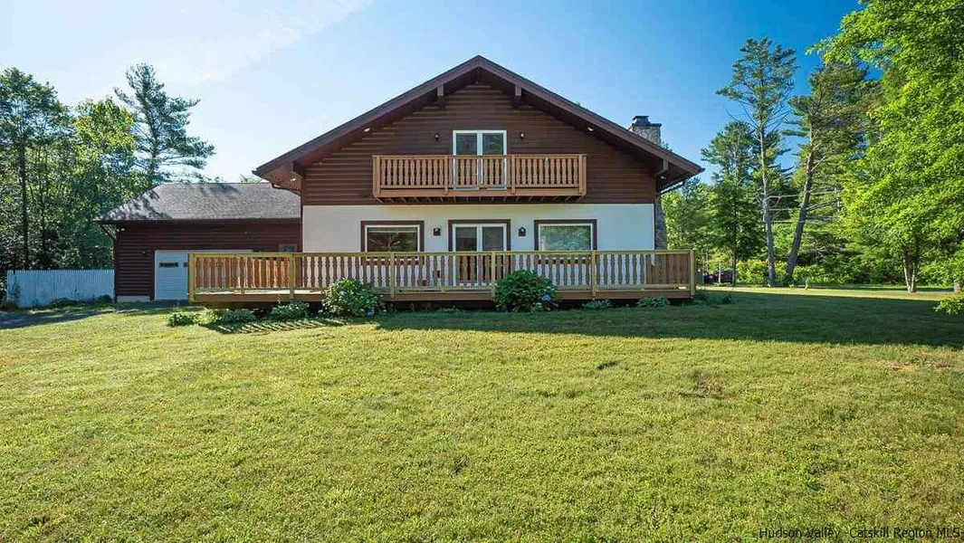 Large custom Chalet on 3+ acres on a quiet dead end road with a bright large and open living room, dining room, chef's kitchen area with large island anchored by a stone fireplace and elevated by 9' ceilings. Three large bedrooms, 2 baths and a laundry room downstairs. Upstairs you'll find 2 more large bedrooms/offices and a bath with skylights and 2 balconies. Extensive decking and an oversized 2 car garage all situated on a wonderful level yard with a lovely wooded area beside. Just a minute or 2 from Rt 23 & Rt 145 intersection but feels miles away. Minutes to Hunter Mountain, Catskill, Saugerties & Woodstock with all the great shops and eateries they offer. Easy to see and love! Great work and live space. Two upstairs bedrooms can easlly be used for 2 distinct offices. Oversized garage with doors at the front and back for all your toys.
