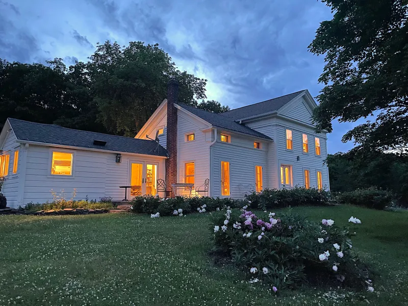 The romance of a quintessential Hudson Valley setting with the complete privacy and seclusion of a 205 acre compound, this perfectly hidden estate offers a respite from the outside world. Enter down a private half mile approach under a canopy of maples and lindens that open to reveal an oasis of rolling hills. At the center, the 1850 gable and wing center hall colonial evokes the World of Interiors with wide board floors and original details. A country kitchen, equipped with Wolf range, Subzero refrigerator, double Asko diswashers and Shaws farmhouse sinks, connect to the deck overlooking the grounds, ideally suited for entertaining. The living room and parlor are designed for intimate gatherings with friends. Also on the ground floor: An office with a private entrance to the heated conservatory, a mud room, pantry, a petit guest bedroom and a powder room. Upstairs are two more guest bedrooms and the sun flooded primary bedroom with ensuite bath. A late nineteenth century barn has been completely rebuilt into an open plan guest house with 22’ a cathedral ceiling and loft bedroom. The climate controlled basement is perfect for archival storage and also contains a 100 ft2 cedar lined walk in closet. Dotted around the grounds are: a 40’x16’ gunite pool, a writer’s cabin in the woods with heat & AC, and a caretaker's cottage or 2nd guest house, and acres of fields with sweeping panoramic views of the Hudson Valley clear to the Berkshires, perfectly suited for a new building site. Generator for house and guest house. 30 min to Hudson or skiing at Windham, 40 min from Albany Int’l Airport, two hours from Manhattan.