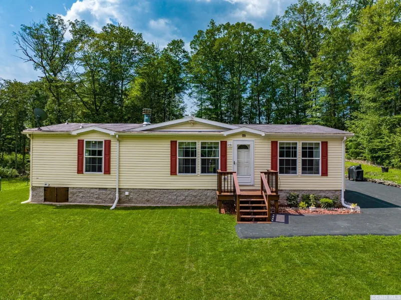 Welcome to your country getaway in Catskill, NY! This 2018 double wide manufactured home offers an incredible opportunity to own a nearly brand new, turnkey residence at a fraction of the cost it would take to build one yourself. Nestled on a generous two-acre lot, this secluded gem is situated down a private road, providing the ultimate retreat. With 3 spacious bedrooms and 3 well-appointed bathrooms, this home is designed to accommodate your lifestyle with ease. As you step inside, you'll be captivated by the warmth of the wood-burning fireplace, creating a cozy ambiance for those chilly evenings. The kitchen is a true highlight, featuring stainless steel appliances, a gas stove and beautiful dark cabinets. Prepare delicious meals while enjoying the open floor plan, allowing for seamless interaction between the kitchen, dining area, and living space. Recent improvements include a new black top driveway, new shed, new propane on-demand hot water heater, central air conditioning, and professional landscaping. Whether you're seeking a weekend retreat or a full-time residence, this home offers the ideal setting to unwind. Immerse yourself in the joys of country living yet enjoy the convenience of being just over 2 hours from NYC, just a short distance away from the vibrant Village of Catskill, Saugerties, Palenville, Hunter and Windham Mountains and the NYS Thruway.
